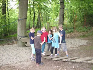 Ein Niedrigseilgarten kann, weil spezielle Sicherungsprozedere entfallen, auch ein